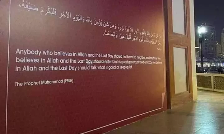 الدوحة – خليج 24| زينت دولة قطر جدران العاصمة الدوحة لـ”أحاديث نبوية” باللغتين العربية والانجليزية، للتعريف بالدين الإسلامي قبل أيام فقط على انطلاق كأس العالم 2022 لديها.