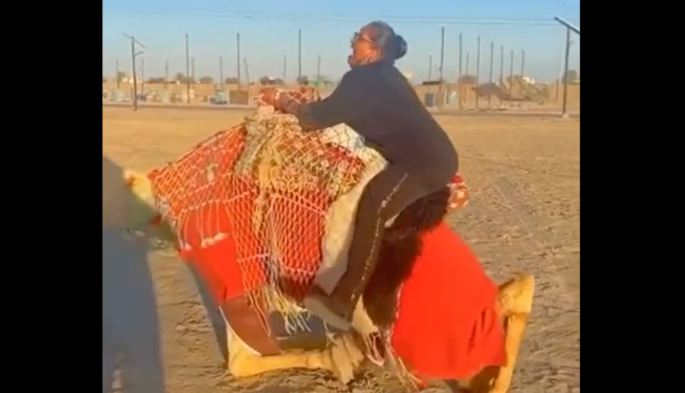 وتصعد هيا في المقطع على الجمل، الذي حاول بعدها أن يهبط على الأرض تدريجيًا.