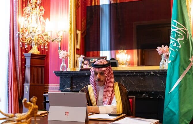 وزير الخارجية السعودي الأمير فيصل بن فرحان يشارك في حدث التعهدات العالي للسودان والمنطقة، الذي عُقِد بشكل افتراضي يوم الاثنين تحت رئاسة مشتركة للمملكة العربية السعودية وقطر ومصر وألمانيا ومكتب الأمم المتحدة لتنسيق الشؤون الإنسانية والاتحاد الأوروبي والمفوضية العليا للاجئين.