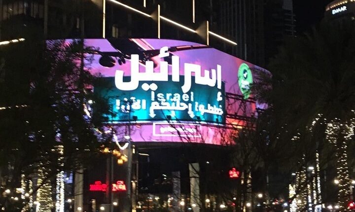 ونشر مغردون صورًا ومقاطع مصورة لإعلانات ترويجية في دبي وخاصة كبرى مجمعاتها التجارية تحث على السفر لإسرائيل.