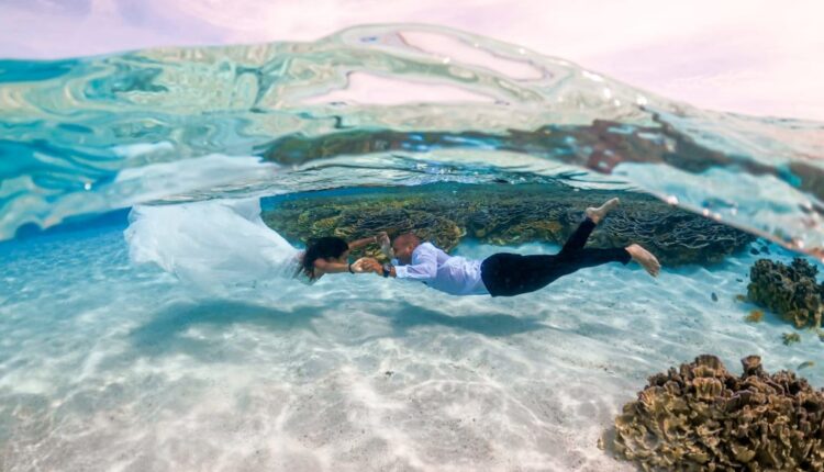 ووثق الثنائي صورا ساحرة بملابس الزفاف تحت أعماق الماء.