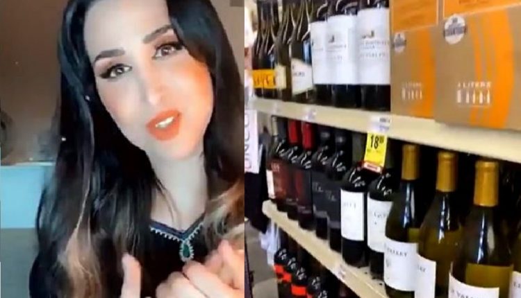 وظهرت القحطاني بمقطع وهي تتجول في صيدلية بأمريكا تضم قسمًا كبيرًا لبيع الخمور فقط.