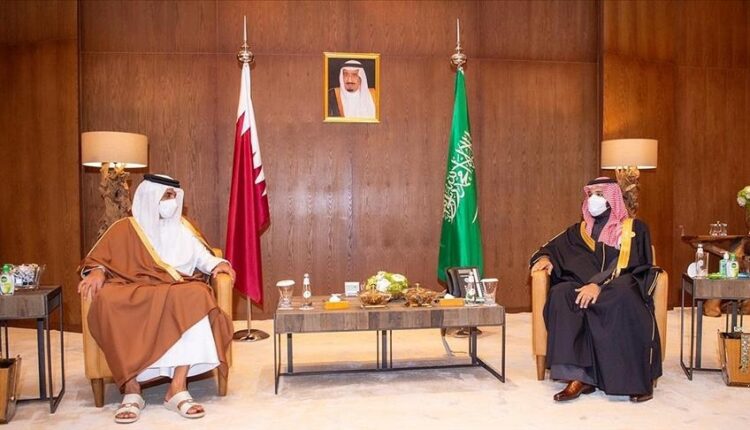 وقال البيان إن أمير قطر تمنى لولي العهد السعودي موفور الصحة.