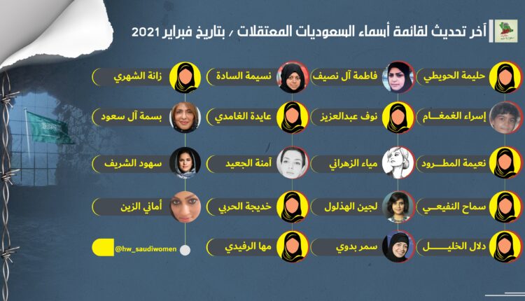 ومؤخرا، نشر حساب “سعوديات معتقلات” قائمة محدثة بأسماء السعوديات المعتقلات في سجون ولي العهد السعودي محمد بن سلمان.
