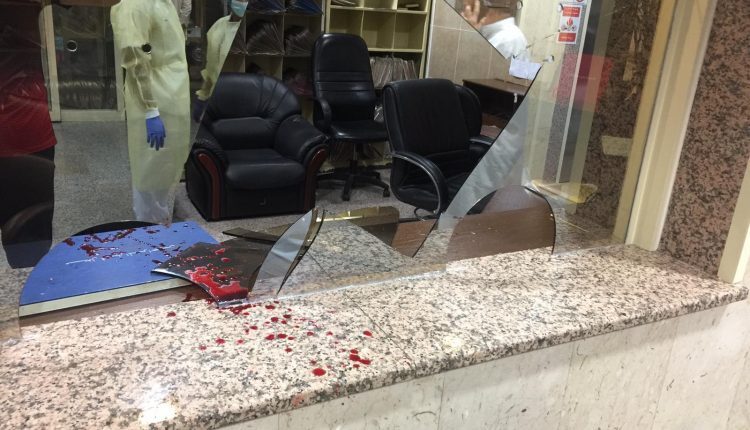 وأظهرت صور متداولة أرضية المستوصف مغطية بالدماء، وتحطم زجاج مكتب الاستقبال وإحداث فوضى بكافة أنحاء المكان.