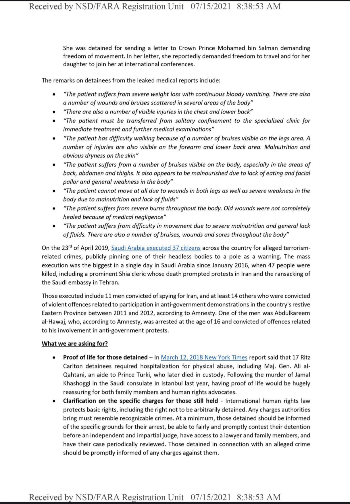 وأيضا كشفا عن تعرض بن نايف “لإصابات خطيرة في قدميه جراء الضرب”.