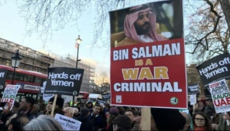 ورفع هؤلاء لافتات أمام المحكمة العليا في لندن، تؤكد أن بريطانيا تخالف القانون بسماحها ببيع أسلحة للسعودية يمكن استخدامها بحرب اليمن.